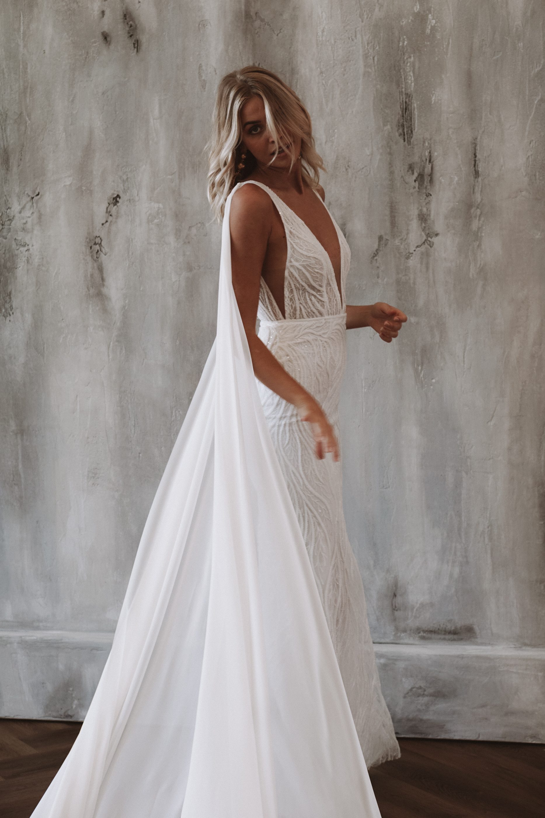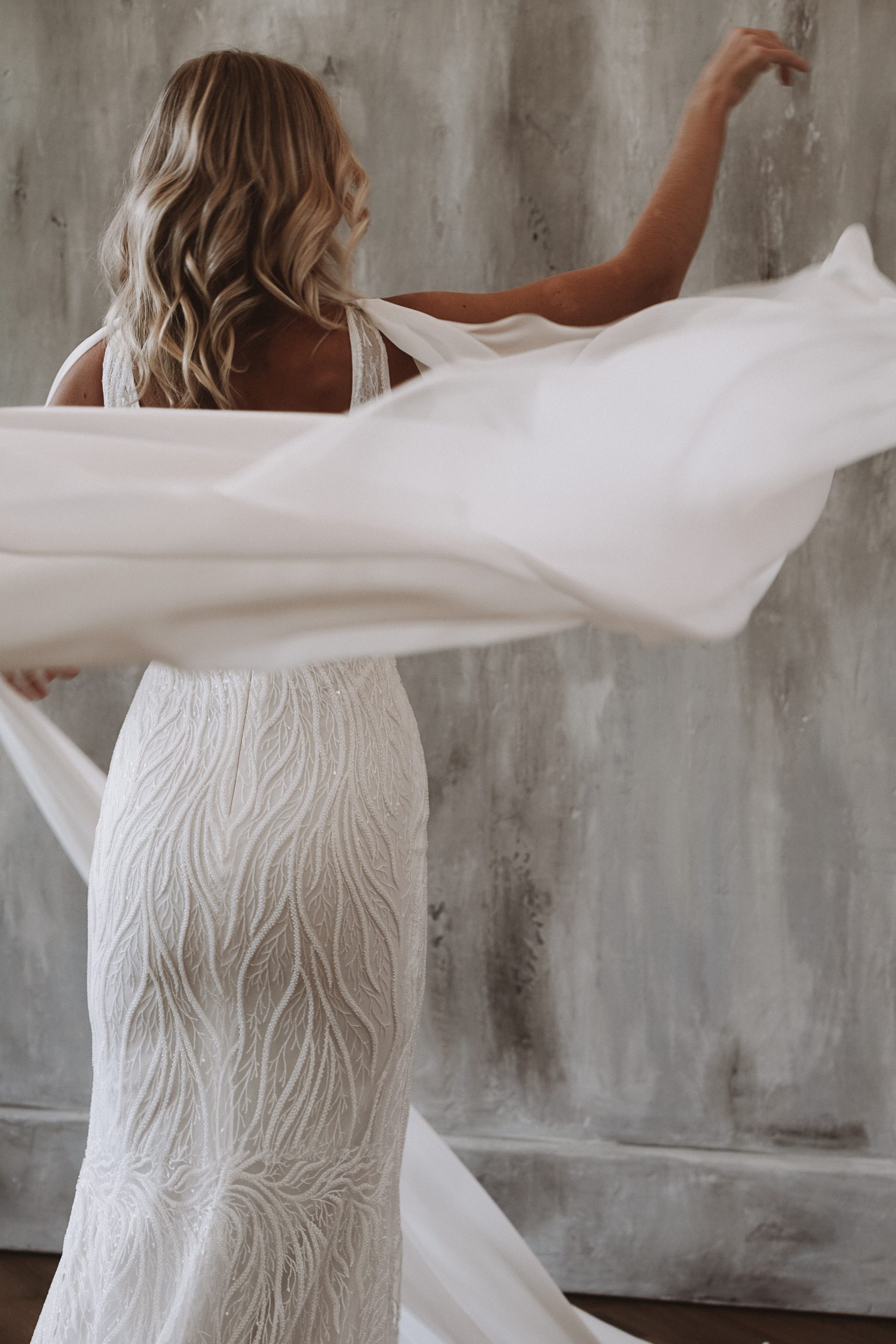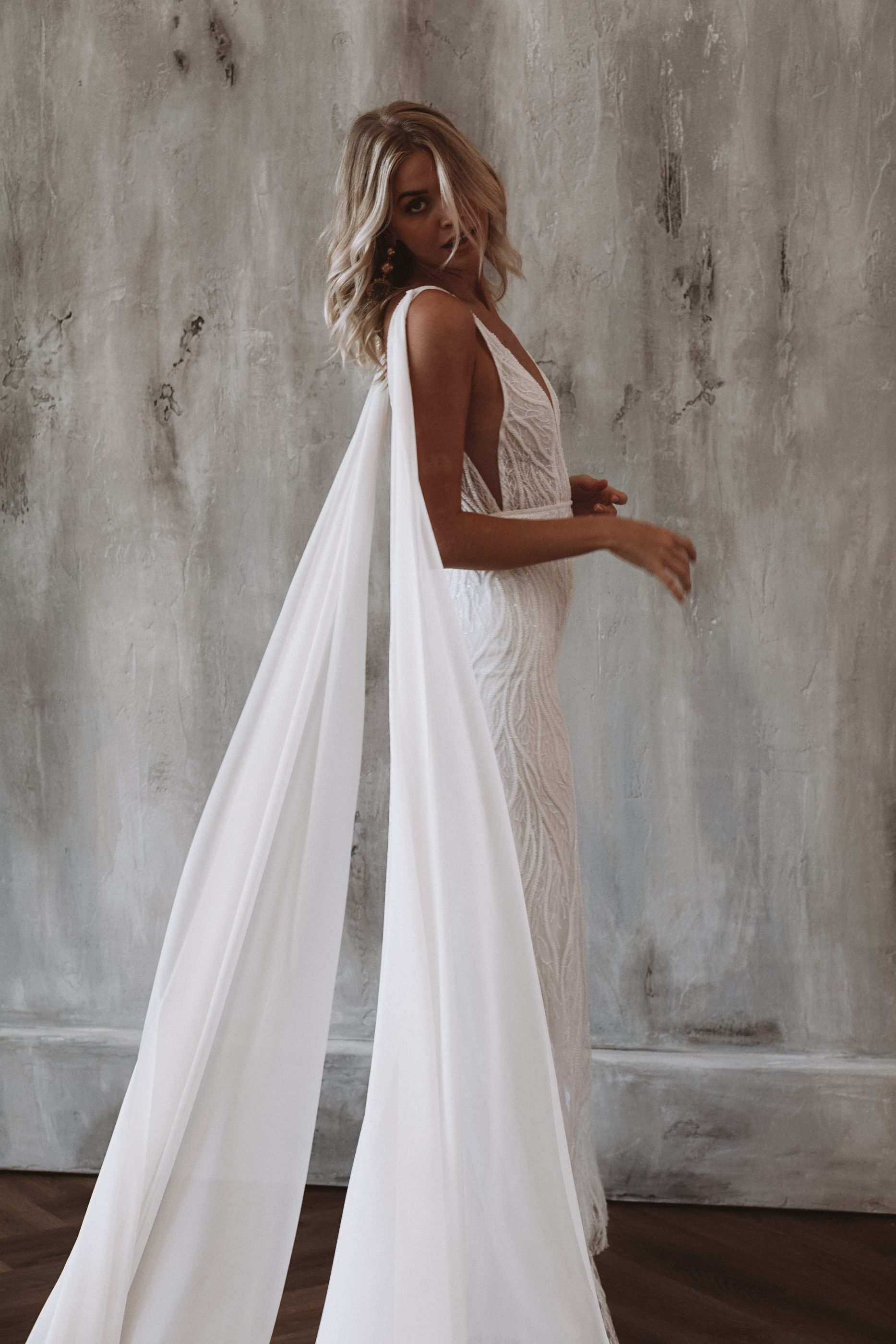 Our detachable chiffon wings are 3m in length and made of the most luxurious chiffon that falls so beautifully. Perfect for 2 looks on your wedding day!