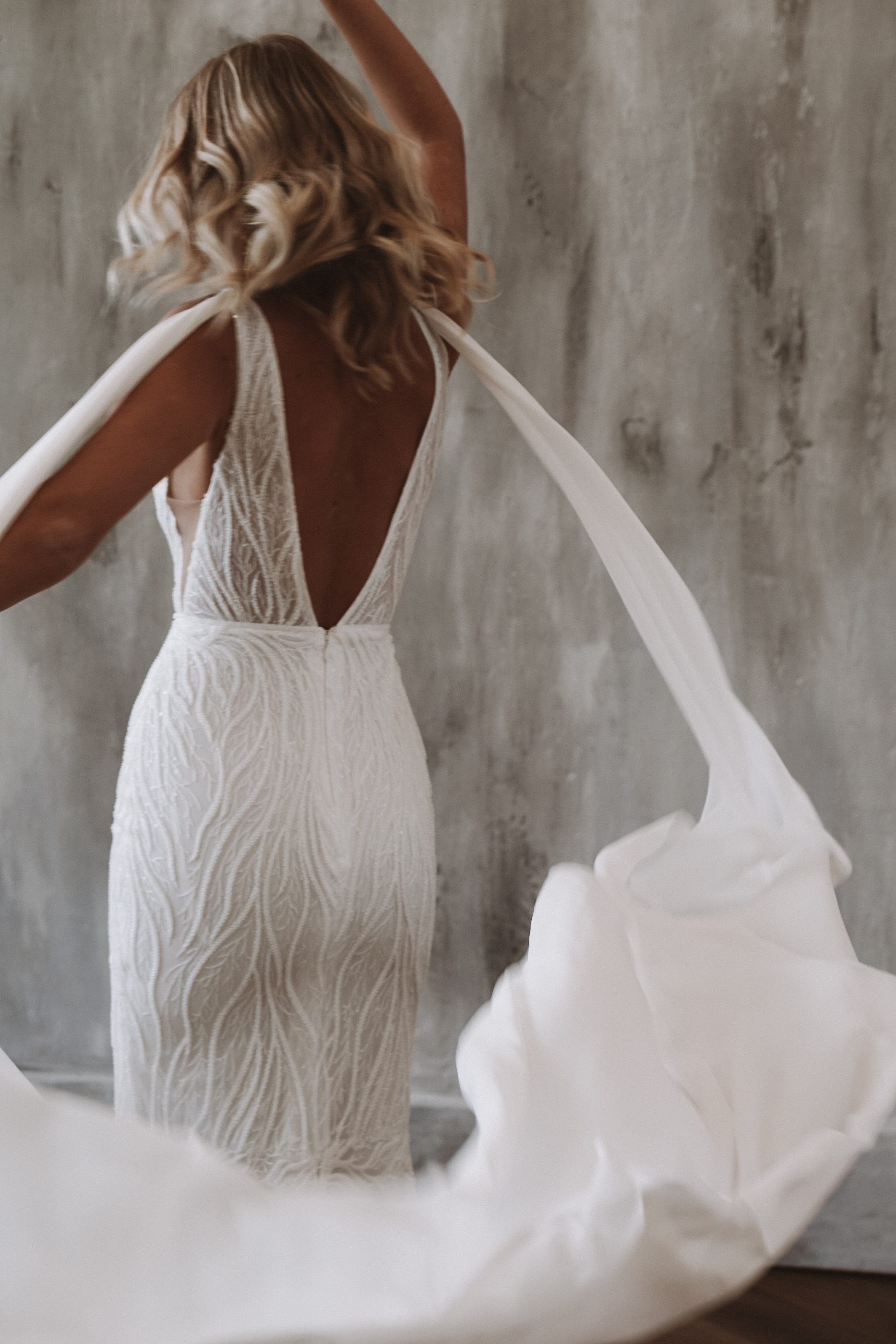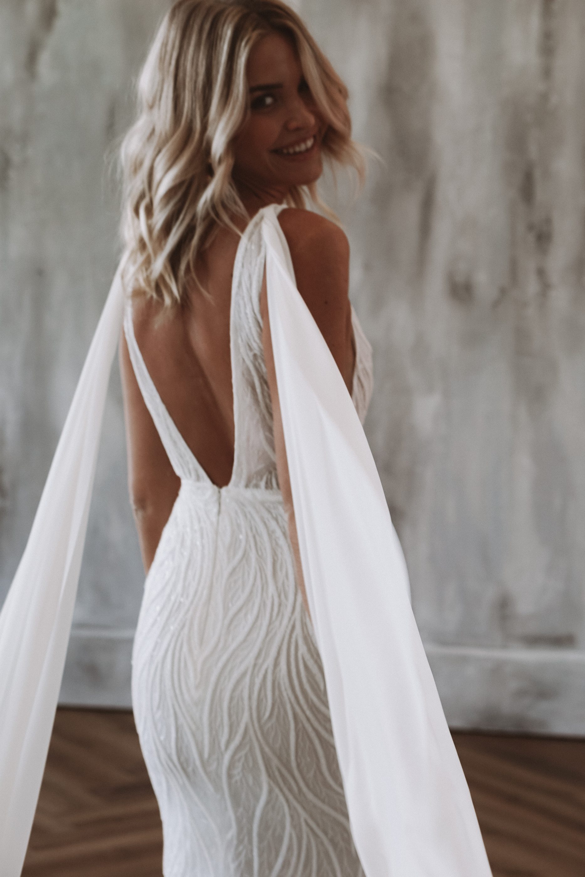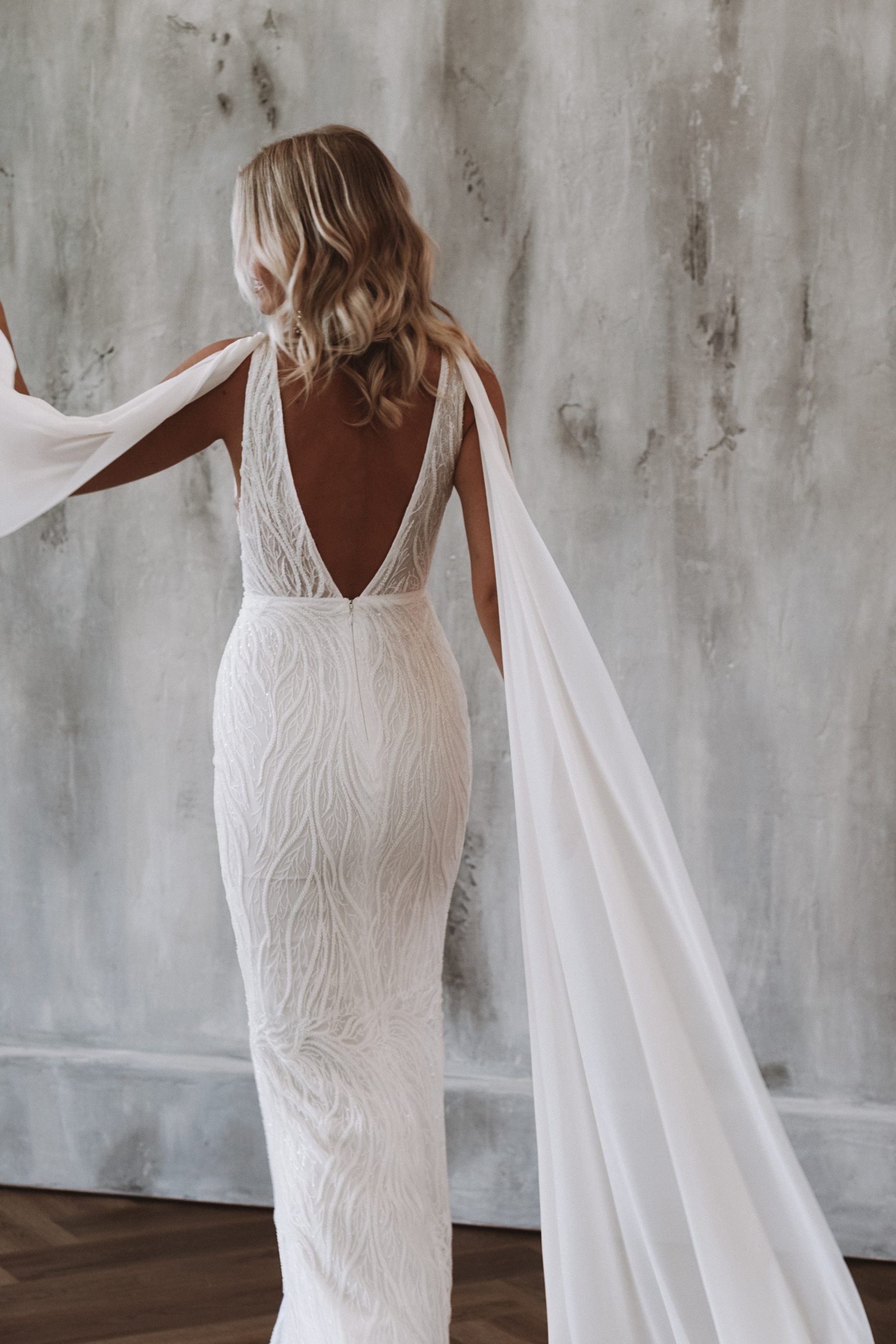 Our detachable chiffon wings are 3m in length and made of the most luxurious chiffon that falls so beautifully. Perfect for 2 looks on your wedding day!