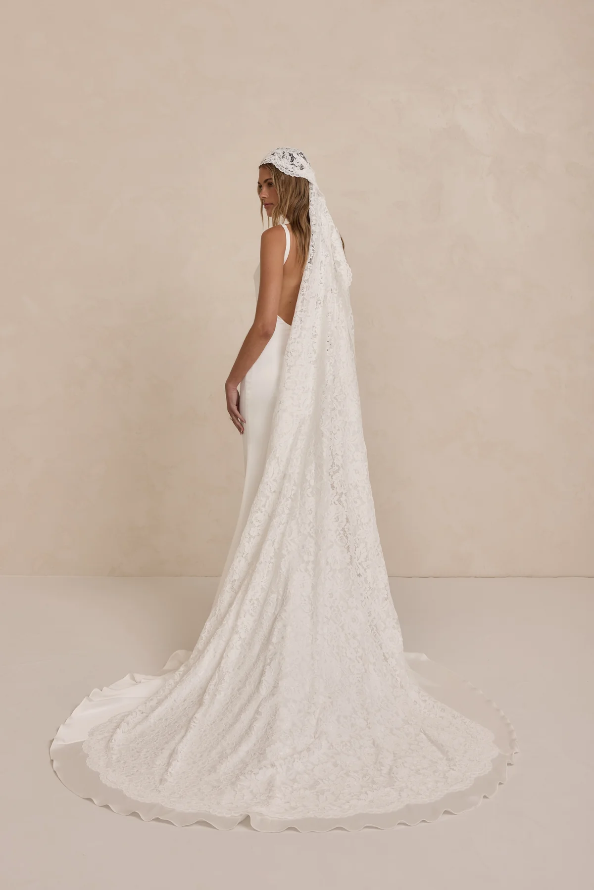 The Frankie Veil is a versatile masterpiece, 2.5 meters of flowing elegance. Featuring a built in comb for secure placement, it can be styled as a classic mantilla veil or as a chic headscarf with a clasp for a more contemporary look. Effortlessly romantic and timeless, the Frankie Veil is perfect for brides seeking both beauty and versatility.