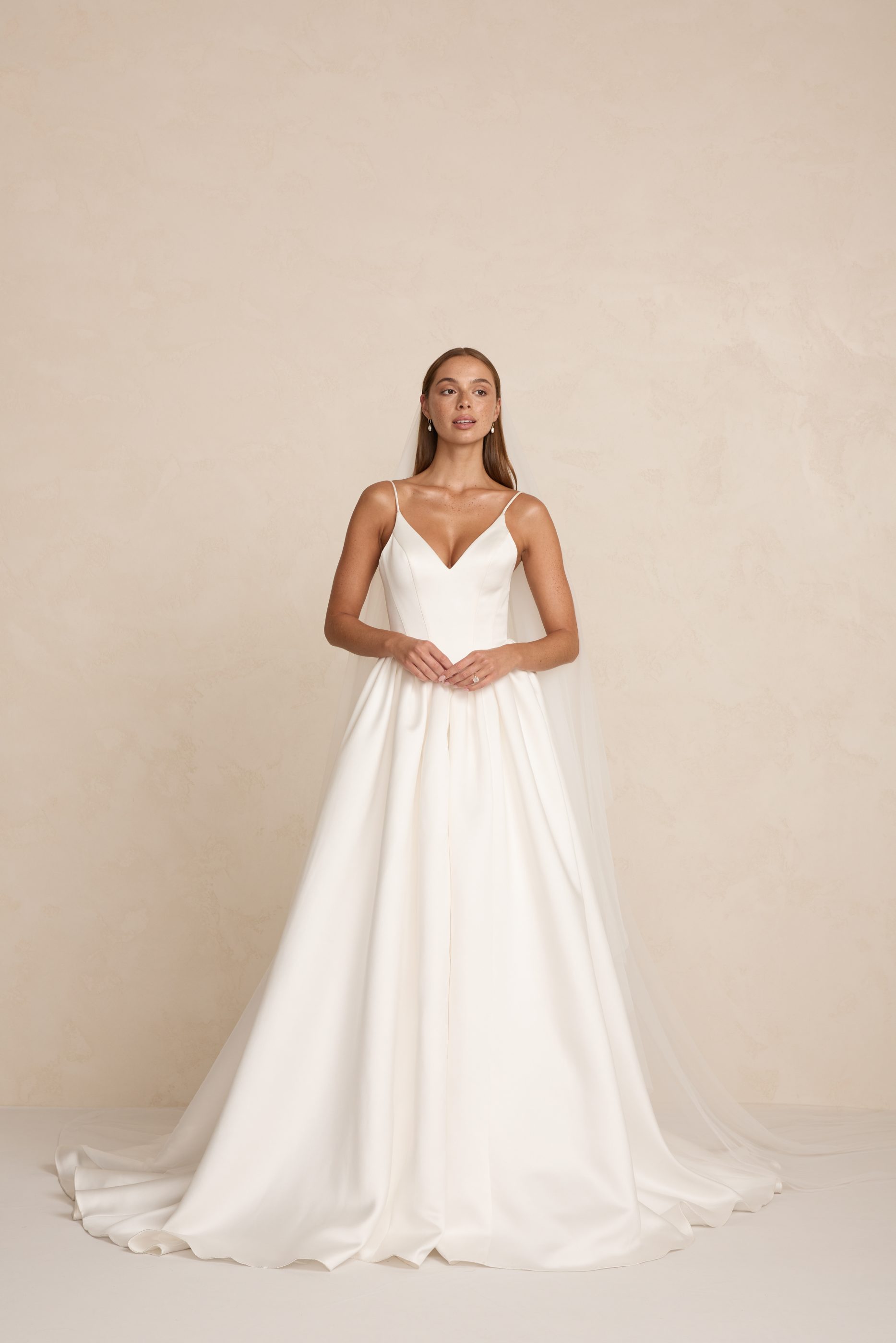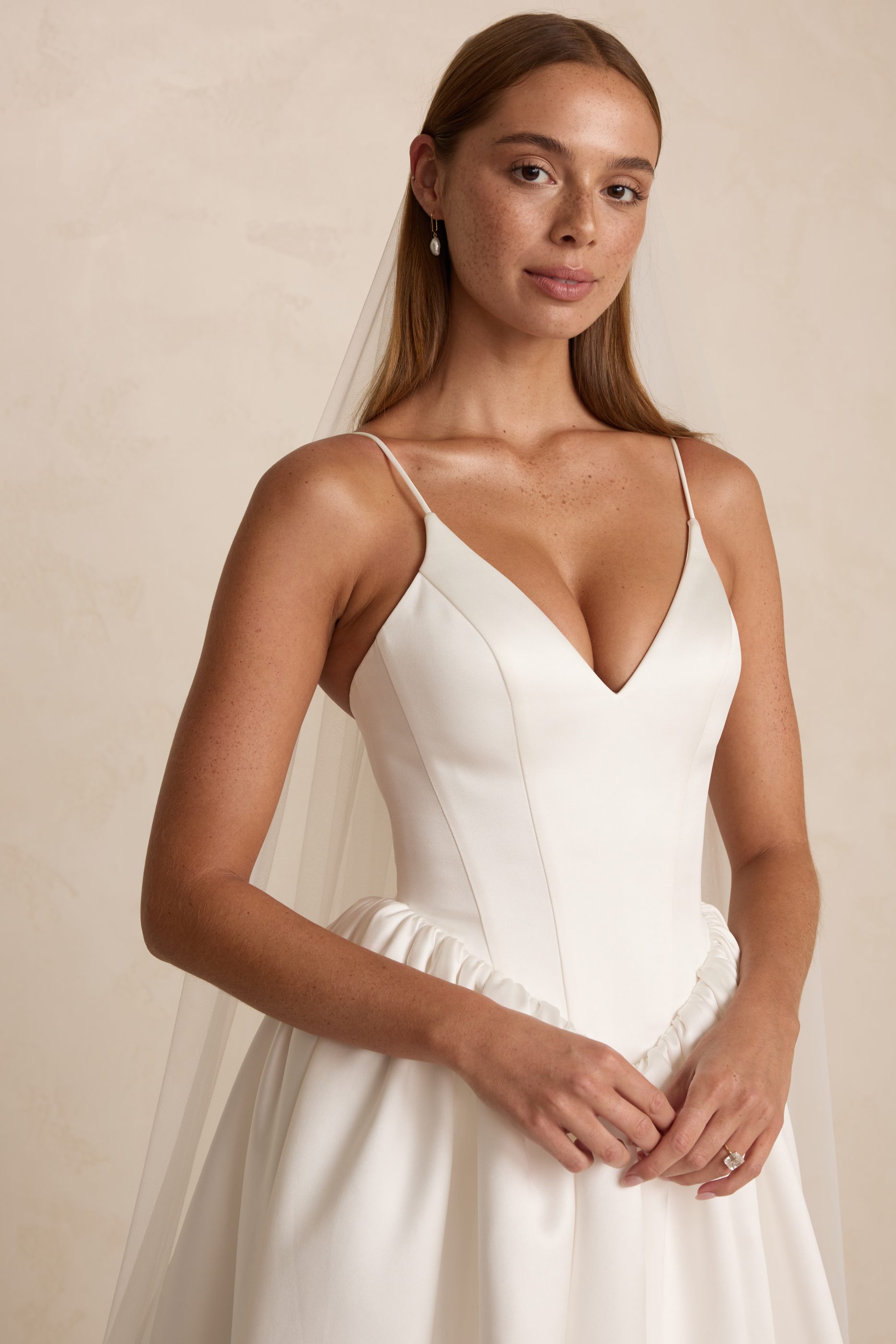 The Wren Veil is a romantic cathedral veil crafted from soft ivory tulle. Measuring 3Ă—3 metres, the Wren Veil creates a dramatic, flowing silhouette that transcends trends.